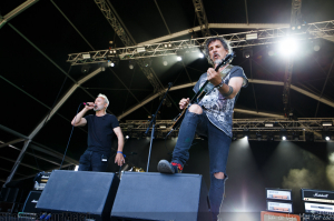 Com o aproximar da noite, aproximavam-se também os maiores motivos de interesse deste último dia, desde logo com os Suffocation, que protagonizaram uma descarga sonora impressionante, numa combinação de peso, técnica e intensidade, mantendo ao mesmo tempo uma qualidade sonora imaculada, sendo provavelmente o concerto que gozou de melhor som nesta edição do festival. Logo de seguida, os Primordial limitaram-se a dar "só" um bom concerto, que certamente não terá deixado de surpreender positivamente quem os estivesse a ver pela primeira vez, mas que não deixou de estar um pouco abaixo daquilo a que já nos habituaram - como que acompanhando a tendência dos seus mais recentes lançamentos discográficos. Por outro lado, os donos e senhores da noite seriam os germânicos Blind Guardian, que entraram a matar com Hansi Kürsch a rapidamente tomar controlo dos acontecimentos e de um público sedento dos vários clássicos que foram sendo interpretados numa actuação que só pecou por ser mais curta do que se esperaria. Ainda que o nosso público estivesse muito longe de ser como o público alemão, que habitualmente torna os concertos desta banda em eventos absolutamente inesquecíveis, muitos foram os momentos em que acompanhou os temas a plenos pulmões, como ficou por demais evidente em The Bard's song – In the Forest ou já perto do final, na inevitável e sempre apoteótica Valhalla. A setlist fez questão de recordar alguns temas da fase mais inicial da carreira da banda, e dada a reacção do muito público presente, nesta que pareceu ter sido a maior enchente desta edição, estamos em crer de que esta foi uma aposta ganha e que, conforme o próprio Kursch fez questão de referir, certamente os Blind Guardian não irão demorar novamente 17 longos anos a regressar a Portugal.